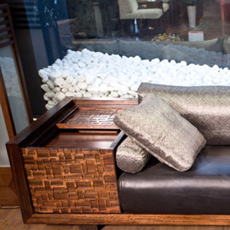 楷模凡尔赛这款沙发既有实木的木纹框架,又有黑色的真皮和银色纹理的靠垫,再加上古典的中式木雕花纹,这种混搭的复古风打破了一直以来中式家具给人的沉闷印象。这样前卫的复古设计让它的适用人群年龄范围更广。它的尺寸较大,将它放在空间较大的客厅里更能突显它的大气,客厅装修比较适合中式装修。